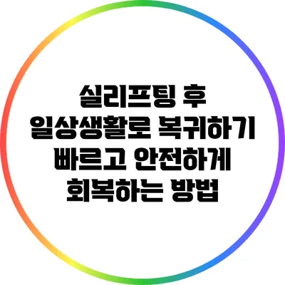 실리프팅 후 일상생활로 복귀하기: 빠르고 안전하게 회복하는 방법