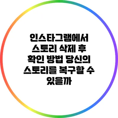 인스타그램에서 스토리를 삭제한 후에도 다시 확인할 수 있는 가능성은 여러 가지가 있지만, 사전에 스토리 아카이브 기능을 설정해 두는 것이 가장 현명한 방법이에요. 스토리를 삭제하기 전에 항상 확인하여 소중한 순간을 잃지 않도록 주의하시길 바랍니다. 이를 통해 당신의 인스타그램 경험을 더욱 풍요롭게 만들어 보세요.