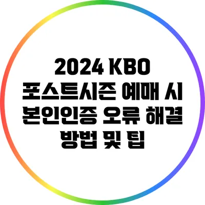 ✅ 2024 KBO 포스트시즌 예매 시 본인인증 오류를 확실히 해결하는 방법을 알아보세요.