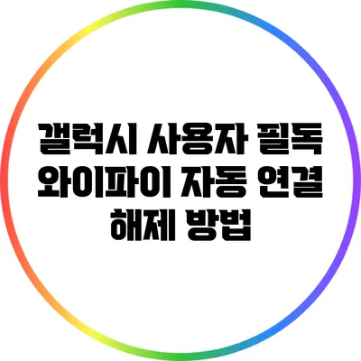 갤럭시 사용자 필독: 와이파이 자동 연결 해제 방법