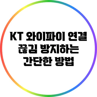 KT 와이파이 연결 끊김 문제를 방지하는 것은 간단한 점검과 설정으로 해결할 수 있습니다. 신호 강도를 높이고, 설정을 최적화하는 것만으로도 많은 문제가 해결될 수 있으니 실천해 보세요. 여러분의 인터넷 사용 경험이 훨씬 더 원활해질 것입니다. 끊김 없는 인터넷 사용을 위해 오늘부터 시도해 보세요!