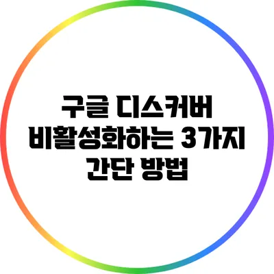 구글 디스커버를 비활성화하는 방법은 여러 가지가 있지만, 가장 간단한 3가지 방법을 소개할게요. 각 방법은 사용자의 필요에 맞게 선택할 수 있어요.