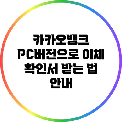 카카오뱅크 PC버전에서 이체 확인서를 받는 방법은 정말 간단하며, 몇 단계만 거치면 누구나 쉽게 이용할 수 있어요. 카카오뱅크를 통해 편리한 금융 서비스의 혜택을 누리면서, 확인서 발급 방법을 숙지하면 좋겠어요. 앞으로 금융 거래 시 이체 확인서를 꼭 확인해 보세요!
