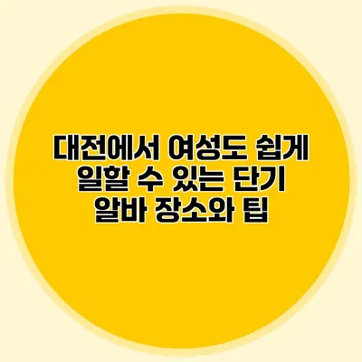 대전은 다양한 단기 알바 기회가 풍부한 도시로, 여성들이 경제적 자립을 이루기에 적합한 장소입니다. 여러 가지 직종 중 자신의 적성과 흥미에 맞는 알바를 선택하여 경력을 쌓고, 여러 경험을 누려보세요.