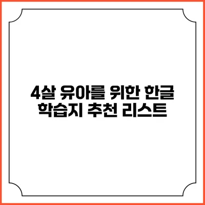 한글을 배우는 과정은 아이들에게 중요한 기초 교육이죠. 특히 4살 어린이들은 호기심이 많고 새로운 것들을 배우기에 최적의 시기입니다. 그래서 오늘은 4살 유아를 위한 한글 학습지 추천 리스트를 소개해 드릴게요. 이 학습지들은 놀이처럼 재미있게 한글을 배울 수 있도록 도와줄 것입니다.